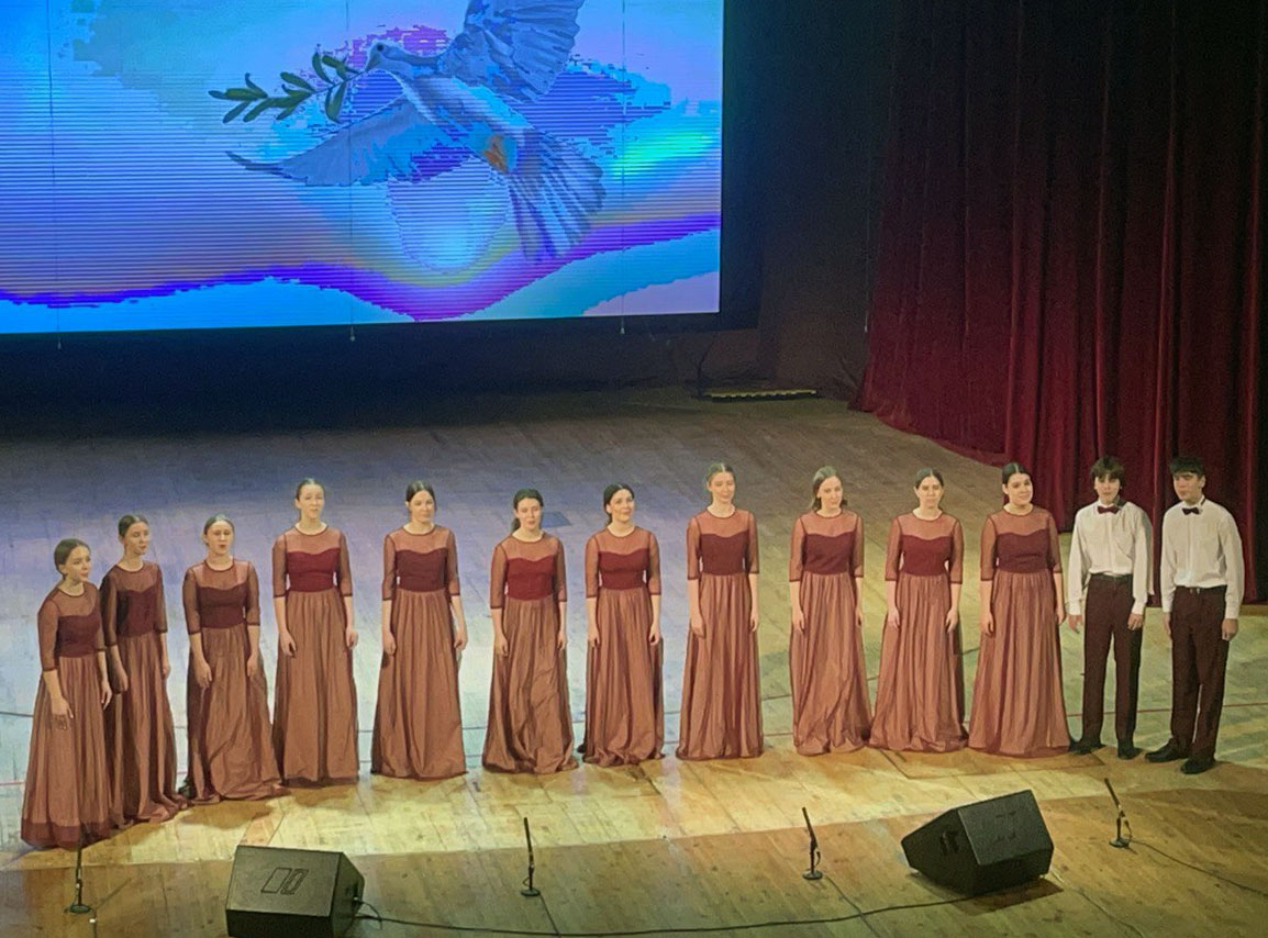 Вокальный ансамбль ДХШ "Полёт" им. Т. Е. Селищевой исполнил песню "Улица Мира" на праздничном концерте, посвящённом Дню защитника Отечества, во Дворце культуры.
